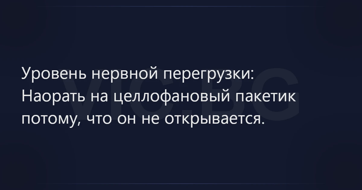 Уровень нервной перегрузки:Наорать на целлофановый пакетик потому, что он не открывается. 20 0 0 Анекдоты