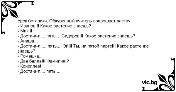 Урок ботаники. Обкуренный учитель вопрошает паству:
