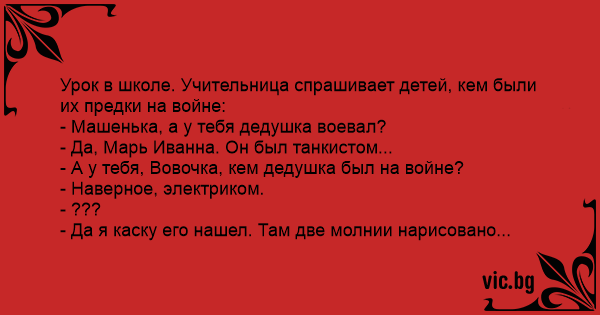 Урок в школе. Учительница спрашивает детей, кем были их предки на войне:
