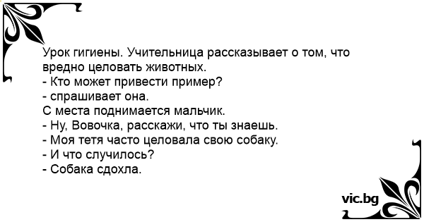 Урок гигиены. Учительница рассказывает о том, что вредно целовать животных.