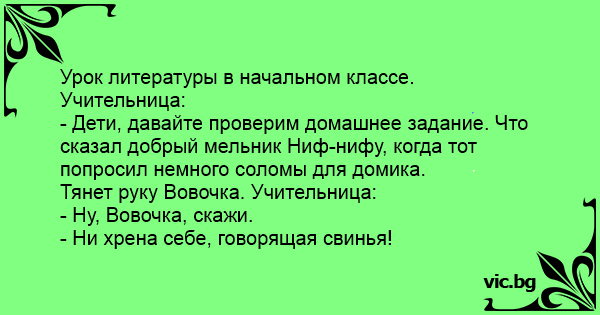 - Дети, давайте проверим домашнее задание. Что сказал добрый мельник Ниф-нифу, когда тот попросил немного соломы для домика.