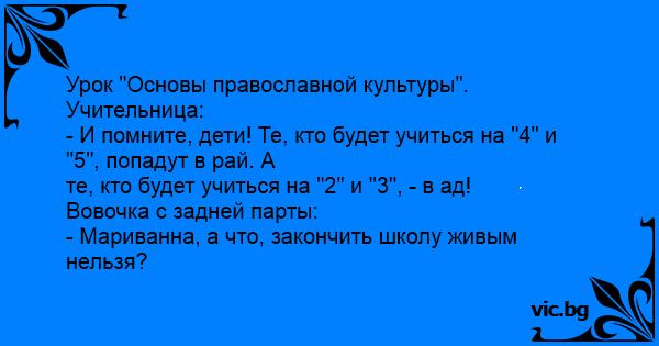 - И помните, дети! Те, кто будет учиться на "4" и "5", попадут в рай. А