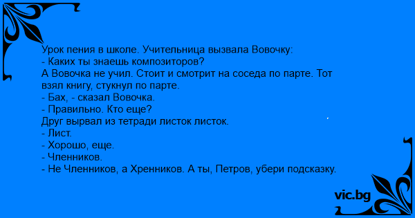 А Вовочка не учил. Стоит и смотрит на соседа по парте. Тот