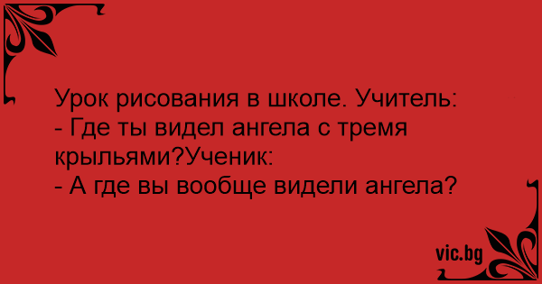 - Где ты видел ангела с тремя крыльями?Ученик: