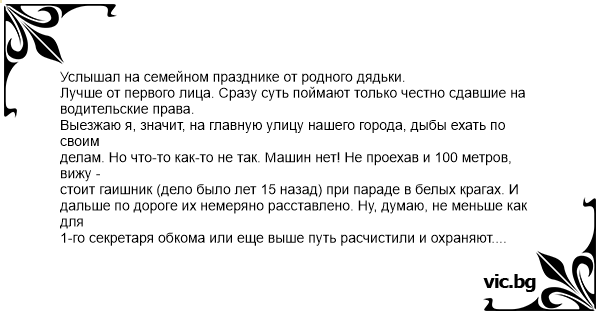 Услышал на семейном празднике от родного дядьки.