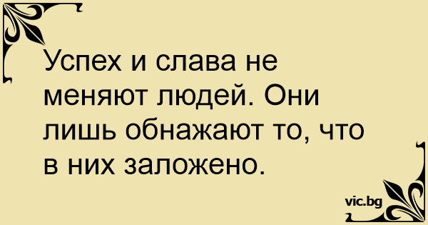 Успех и слава не меняют людей. Они лишь обнажают то, что в них заложено.
