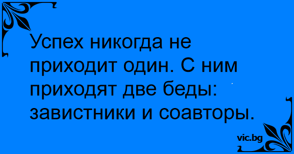 Успех никогда не приходит один. С ним приходят две беды: завистники и соавторы.