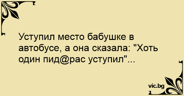 Уступил место бабушке в автобусе, а она сказала: "Хоть один пид@рас уступил"...