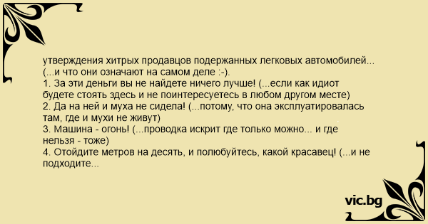 утверждения хитрых продавцов подержанных легковых автомобилей...