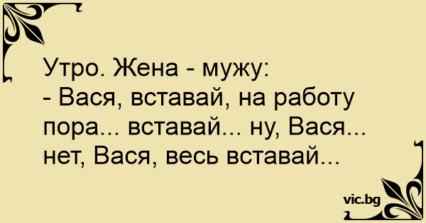 - Вася, вставай, на работу пора... вставай... ну, Вася... нет, Вася, весь вставай...