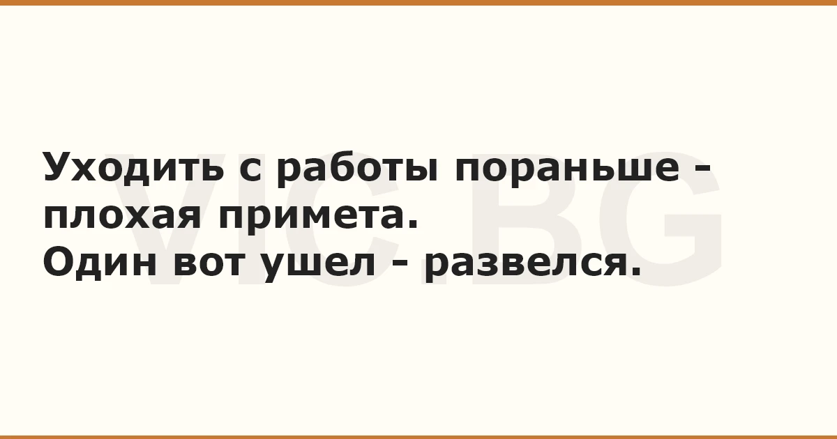 Уходить с работы пораньше - плохая примета. Один вот ушел - развелся.