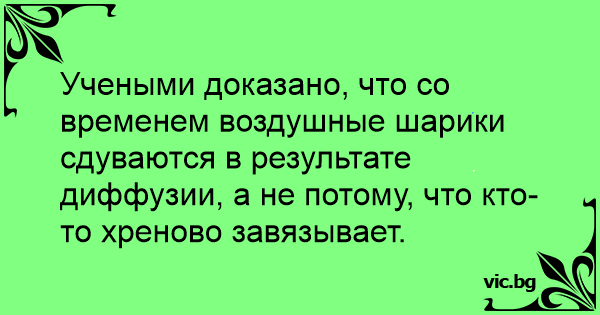Учеными доказано, что со временем воздушные шарики сдуваются в результате диффузии, а не потому, что кто-то хреново завязывает.