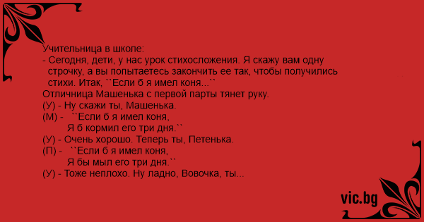 - Сегодня, дети, у нас урок стихосложения. Я скажу вам одну