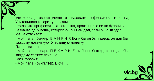 учительница говорит ученикам: - назовите профессию вашего отца,...
