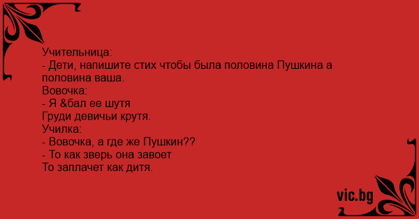 - Дети, напишите стих чтобы была половина Пушкина а половина ваша.