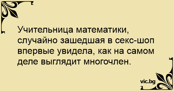 Учительница математики, случайно зашедшая в cekc-шоп впервые увидела, как на самом деле выглядит многочлен.