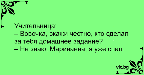 – Вовочка, скажи честно, кто сделал за тебя домашнее задание?