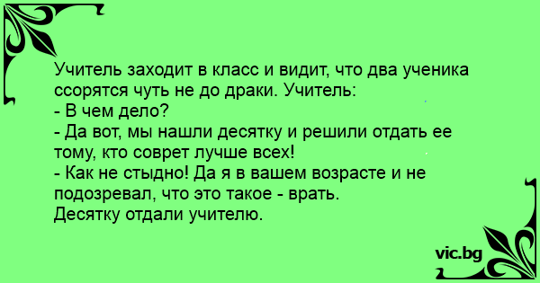 Учитель заходит в класс и видит, что два ученика ссорятся чуть не до драки. Учитель: