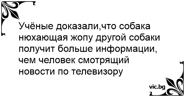 Учёные доказали,что собака нюхающая жопу другой собаки получит больше информации, чем человек смотрящий новости по телевизору