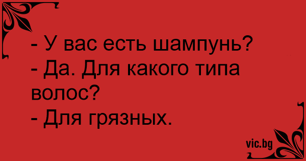 - Имате ли шампоан? - За каква коса? - За мръсна