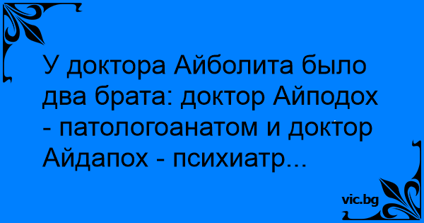 У доктора Айболита было два брата: доктор Айподох - патологоанатом и доктор Айдапох - психиатр...