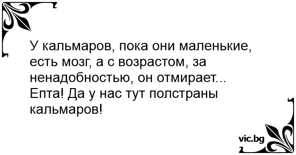 У кальмаров, пока они маленькие, есть мозг, а с возрастом, за ненадобностью, он отмирает...