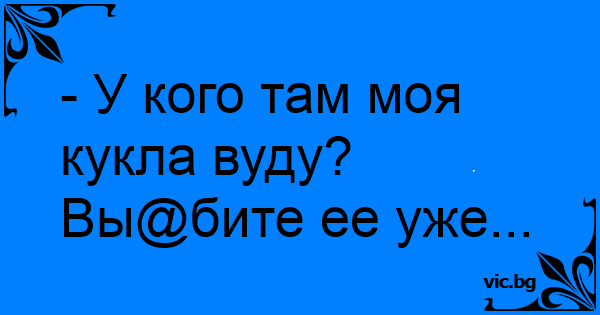 - У кого там моя кукла вуду? Вы@бите ее уже...