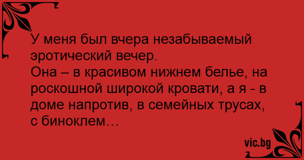 У меня был вчера незабываемый эротический вечер.