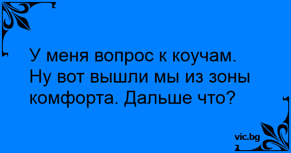 У меня вопрос к коучам. Ну вот вышли мы из зоны комфорта. Дальше что?