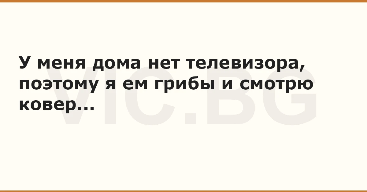 У меня дома нет телевизора, поэтому я ем грибы и смотрю ковер...