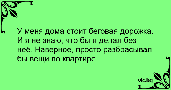 У меня дома стоит беговая дорожка. И я не знаю, что бы я делал без неё. Наверное, просто разбрасывал бы вещи по квартире.