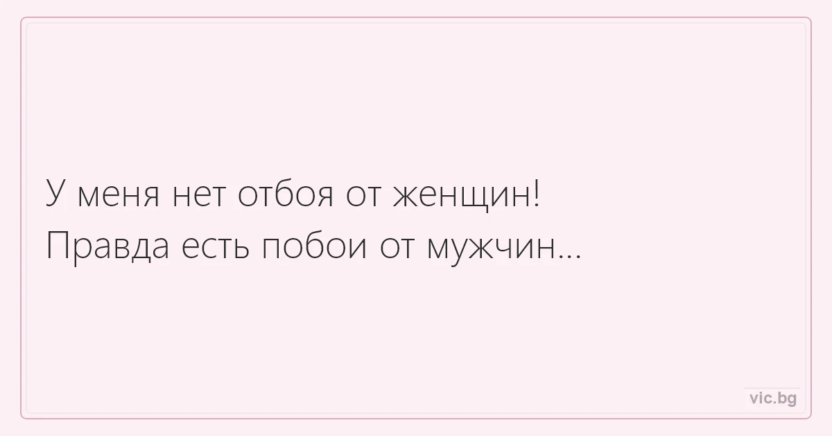 У меня нет отбоя от женщин!<br />Правда есть побои от мужчин...