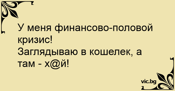 Във финансова-полова криза съм. Поглеждам в портфейла, а там - к*р