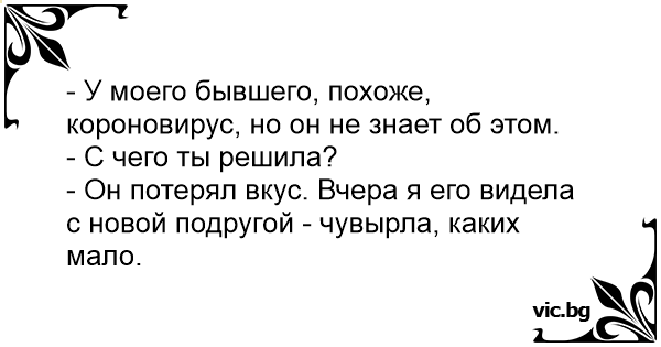 - У моего бывшего, похоже, короновирус, но он не знает об этом.