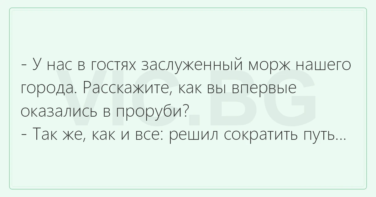- У нас в гостях заслуженный морж нашего города. Расскажите, как вы впервые оказались в проруби?
