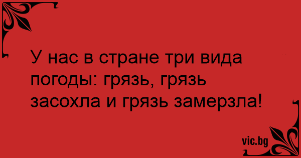 У нас в стране три вида погоды: грязь, грязь засохла и грязь замерзла!