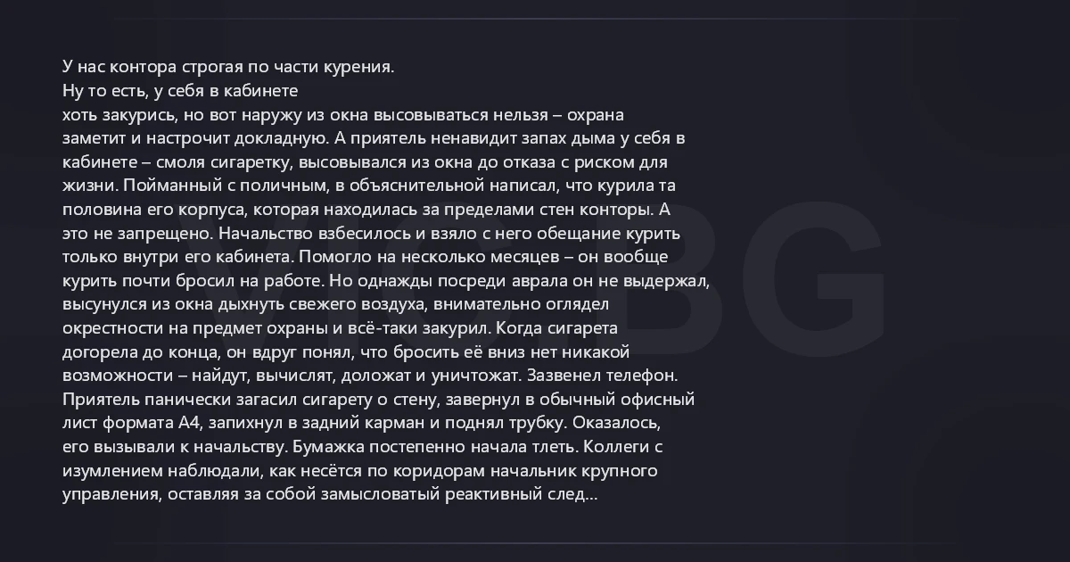 У нас контора строгая по части курения.
