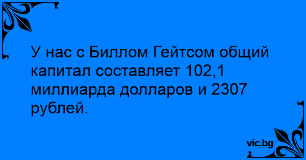 У нас с Биллом Гейтсом общий капитал составляет 102,1 миллиарда долларов и 2307 рублей.