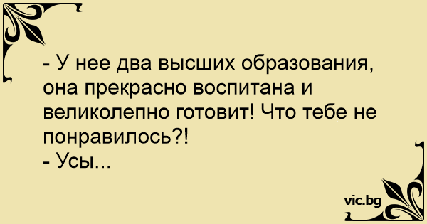 - У нее два высших образования, она прекрасно воспитана и великолепно готовит! Что тебе не понравилось?!