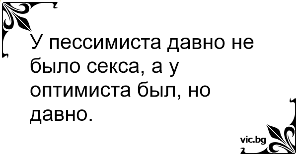 У пессимиста давно не было ceкca, а у оптимиста был, но давно.