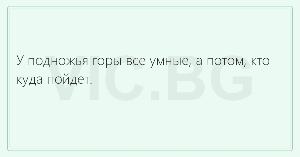 У подножья горы все умные, а потом, кто куда пойдет.