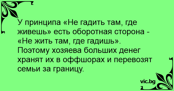У принципа «Не гадить там, где живешь» есть оборотная сторона - «Не жить там, где гадишь».