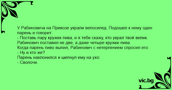 - Поставь пару кружек пива, и я тебе скажу, кто украл твой велик.