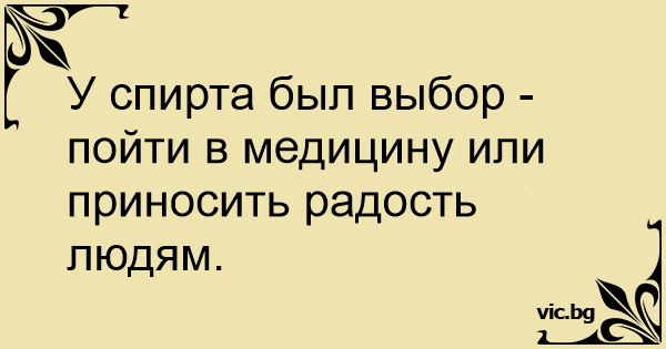 У спирта был выбор - пойти в медицину или приносить радость людям.