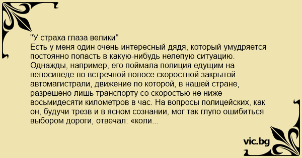"У страха глаза велики" Есть у меня один очень интересный дядя, который умудряется постоянно попасть в какую-нибудь нелепую ситуацию.