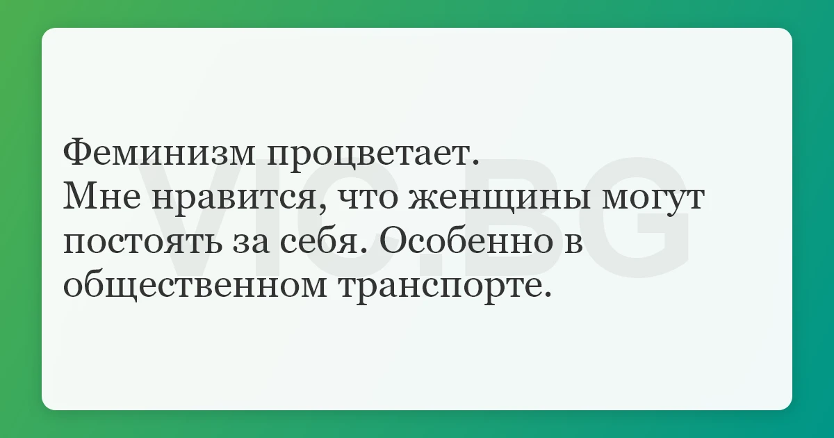 Феминизм процветает. Мне нравится, что женщины могут постоять за себя. Особенно в общественном транспорте.