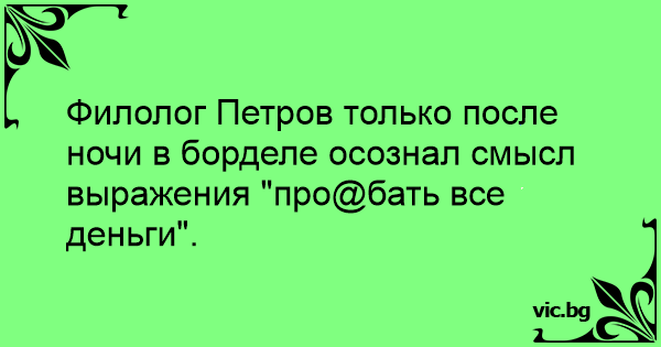 Филолог Петров только после ночи в борделе осознал смысл выражения "про@бать все деньги".