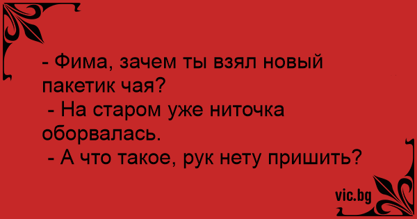 - Фима, зачем ты взял новый пакетик чая?