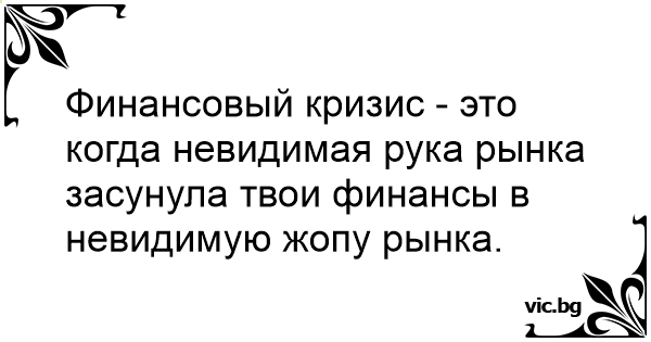 Финансовый кризис - это когда невидимая рука рынка засунула твои финансы в невидимую жопу рынка.