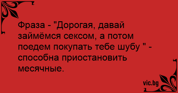 Фраза - "Дорогая, давай займёмся ceкcoм, а потом поедем покупать тебе шубу " - способна приостановить месячные.